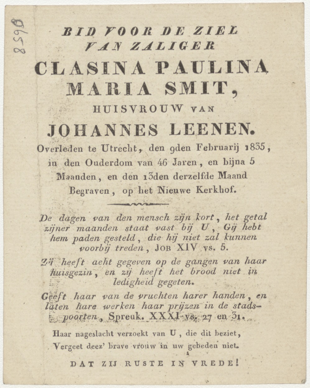 H. Marguerite (Frans), kz. Bid voor ziel Smit-Leenen (+1835) Utrecht