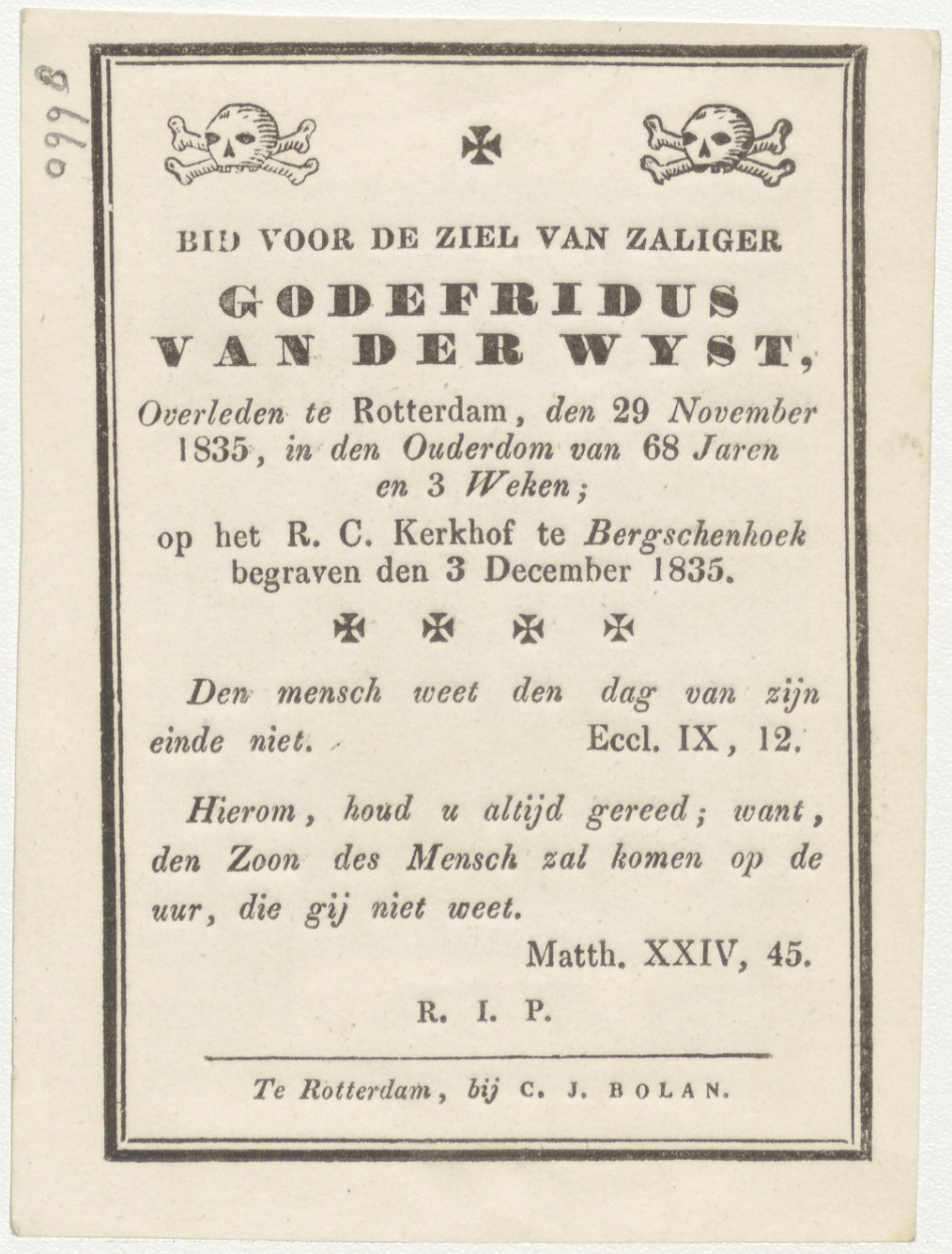Met Jezus vrees ik niets, kz. Bid voor ziel Van der Wijst (+1835) Rotterdam