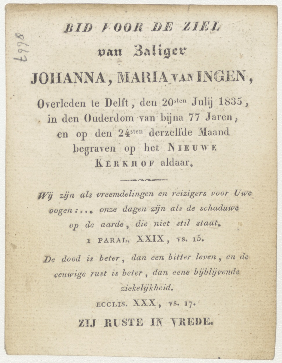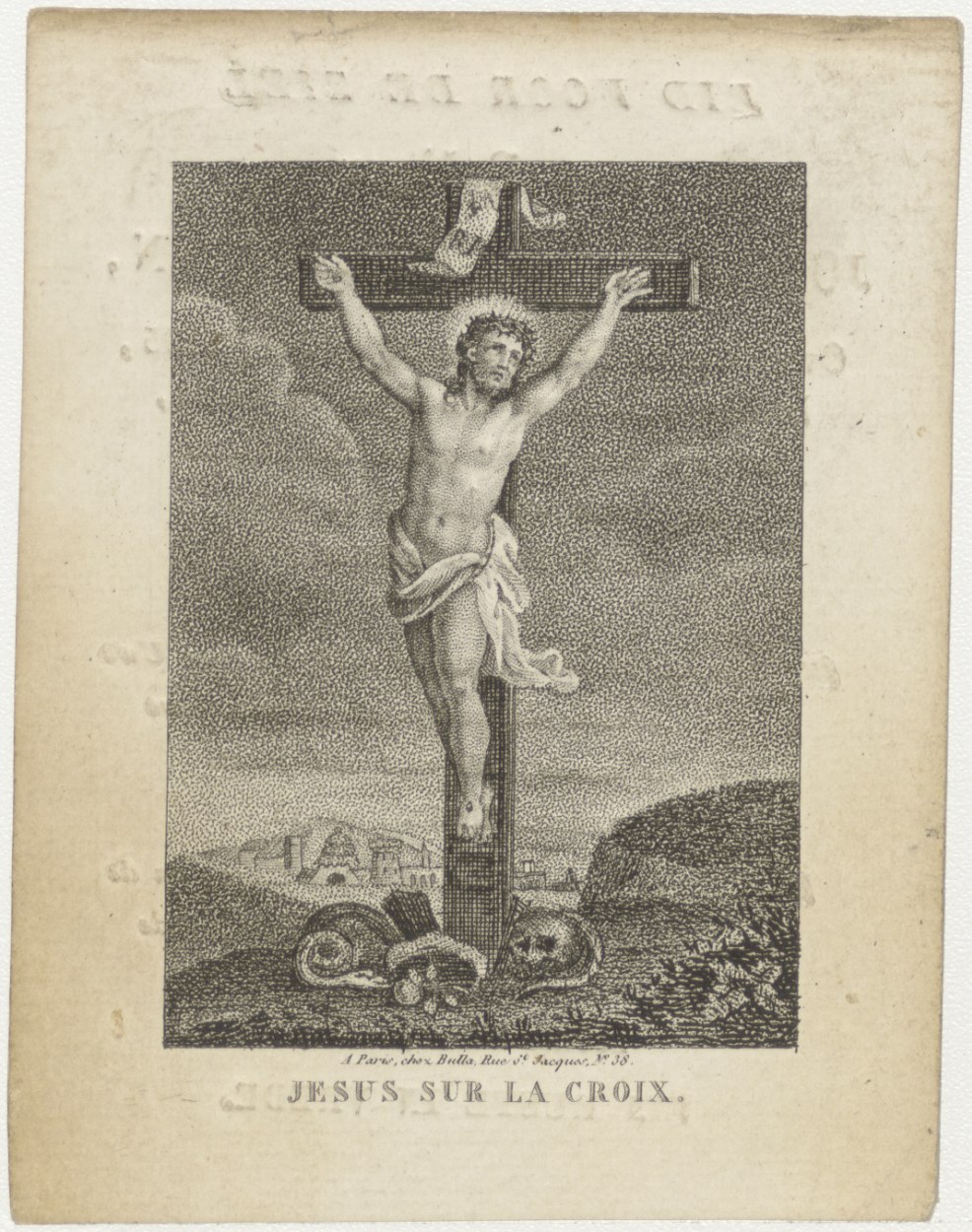 Christus aan het kruis (Frans), kz. Bid voor ziel Van Ingen (+1835) Delft
