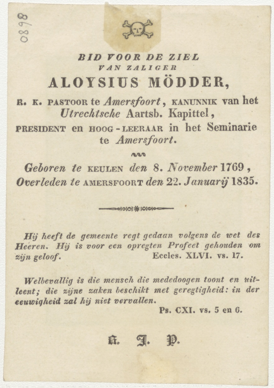 Kruis van Jezus Christus, kz. Religieus; bid voor ziel Aloysius Mödder (+1835) pastoor te Amersfoort, kanunnik Utrecht