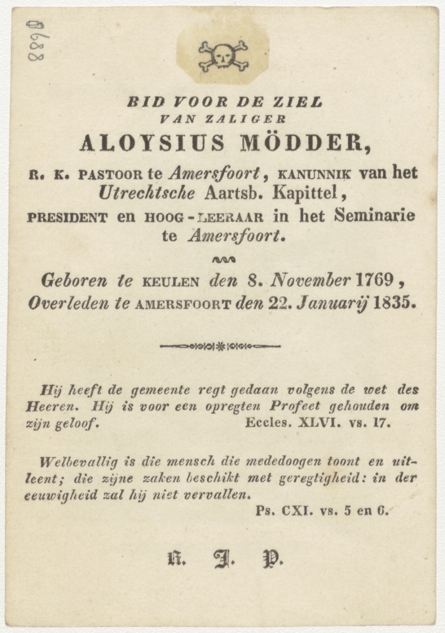H. Josephus (Jozef), kz. Religieus; bid voor ziel Aloysius Mödder (+1835) pastoor te Amersfoort, kanunnik Utrecht