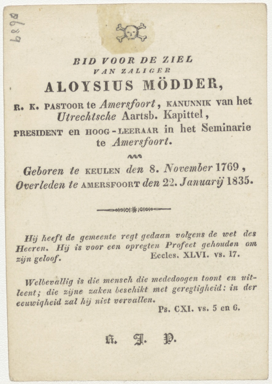 H. Hilarius, kz. Religieus; bid voor ziel Aloysius Mödder (+1835) pastoor te Amersfoort, kanunnik Utrecht
