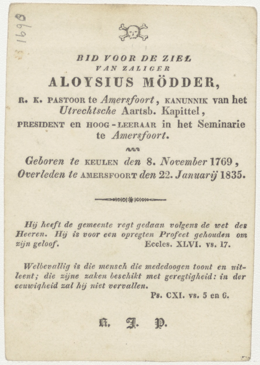 H. Simon, kz. Religieus; bid voor ziel Aloysius Mödder (+1835) pastoor te Amersfoort, kanunnik Utrecht