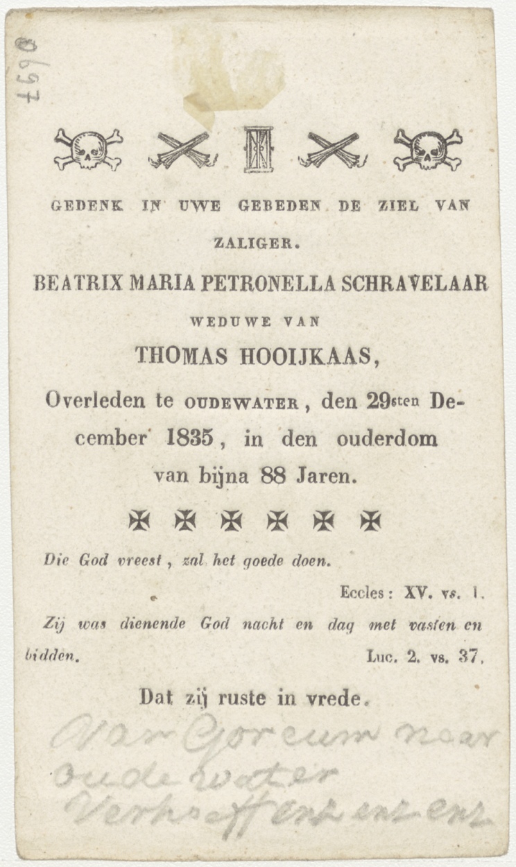 H. Vincent a Paulus (Frans), kz. Bid voor ziel Schravelaar-Hooykaas (+1835) Oudewater