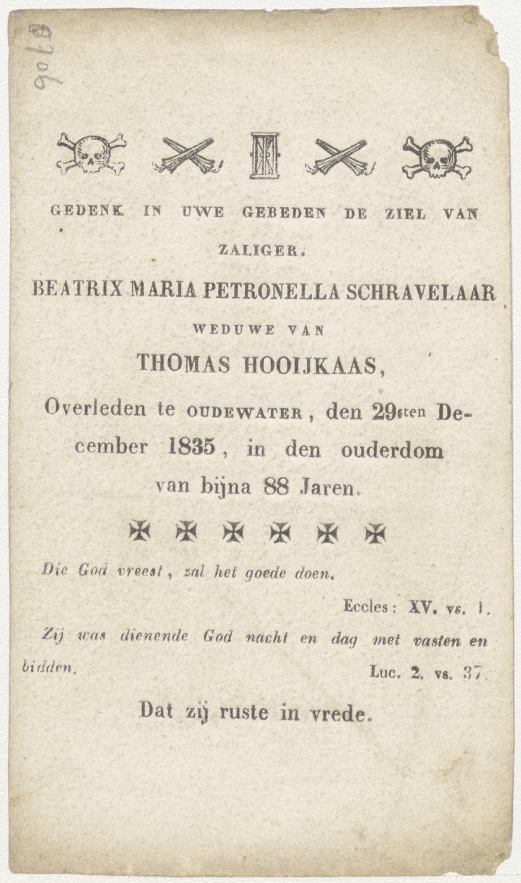 H. Victor (Frans), kz. Bid voor ziel Schravelaar-Hooykaas (+1835) Oudewater