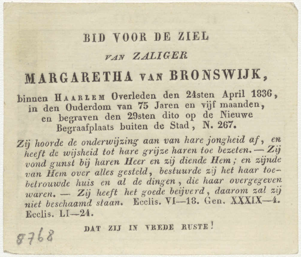 David met pst gestraft (2 Sam. 23:15);, kz. Bid voor ziel Van Bronswijk (+1836) Haarlem
