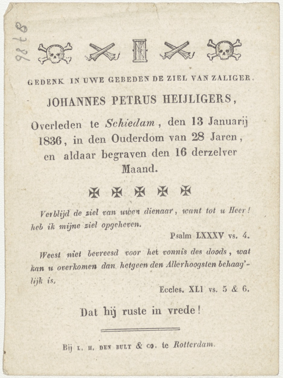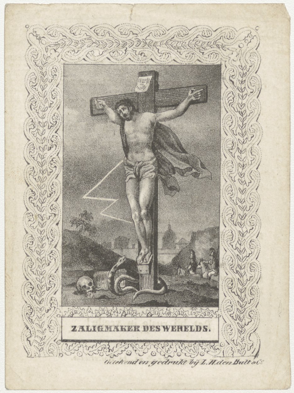 Christus, zaligmaker des werelds, kz. Bid voor ziel Heyligers (+1836) Schiedam