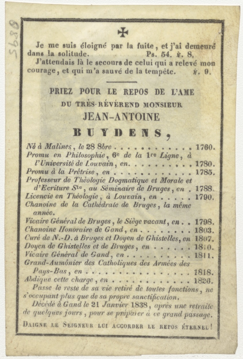 H. Gregorius, kz. Religieus; bid voor ziel Jean-Antoine Ruydens (+1838) vicaris-generaal te Brugge (Frans)