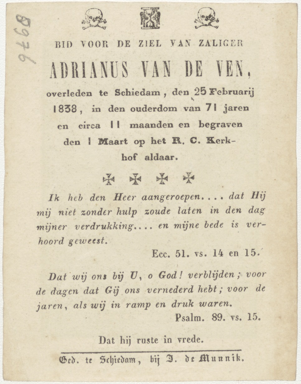 Kruis van Christus, kz. Bid voor ziel Van de Ven (+1838) Schiedam