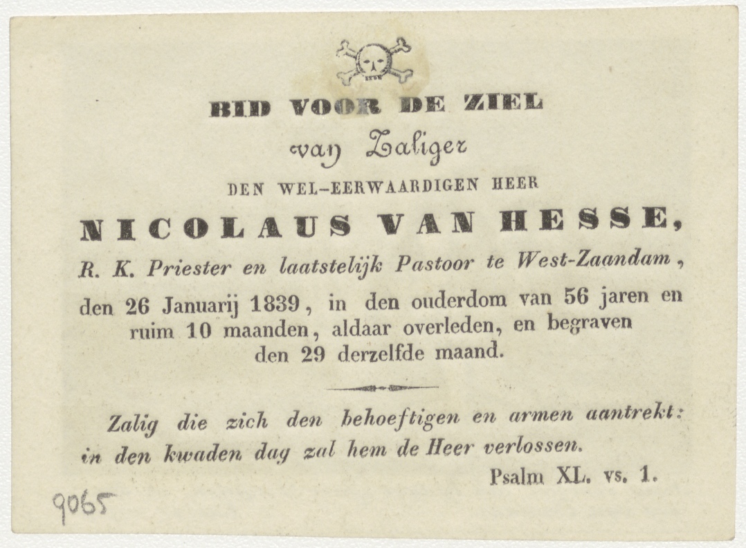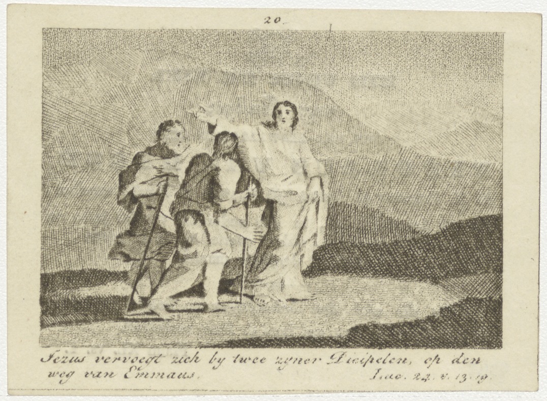 Christus vervoegt zich bij de discipelen op den weg van Emmaus (Luc. 24:13-19), kz. Religieus; bid voor ziel Nicolaas van Hesse (+1839) pastoor te West-Zaandam