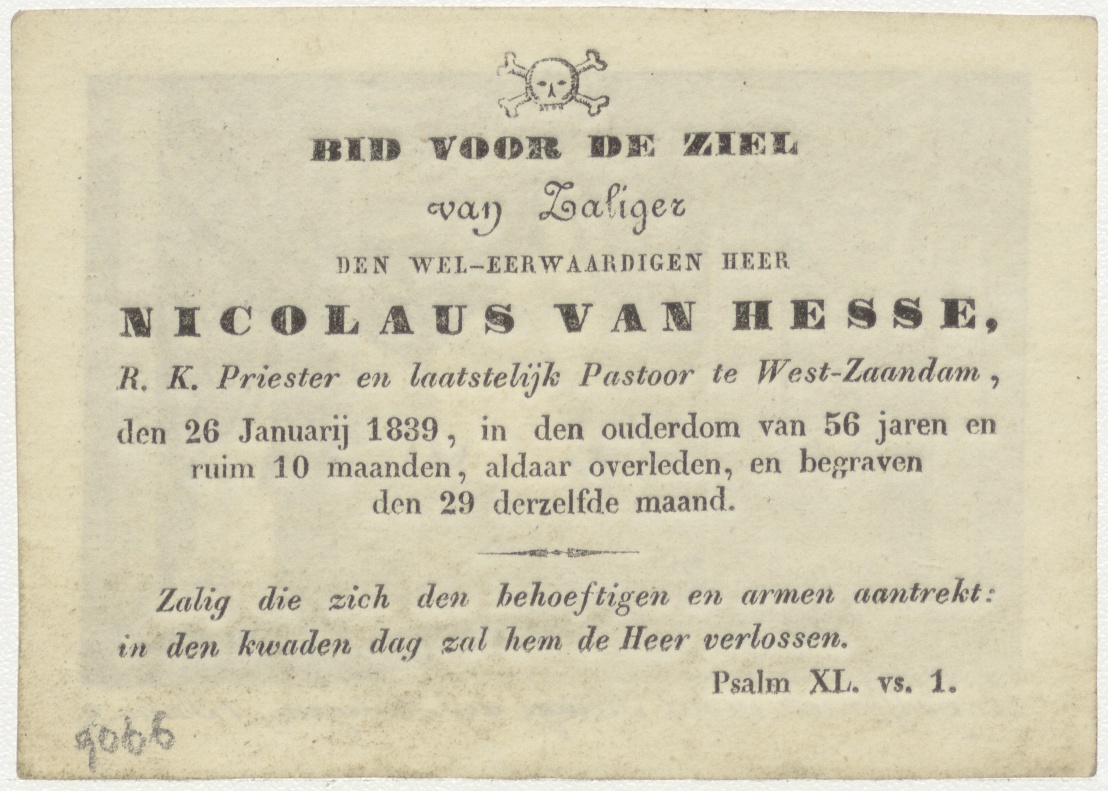 Godsspraak in het heilige der heiligen (1 Sam.3), kz. Religieus; bid voor ziel Nicolaas van Hesse (+1839) pastoor te West-Zaandam