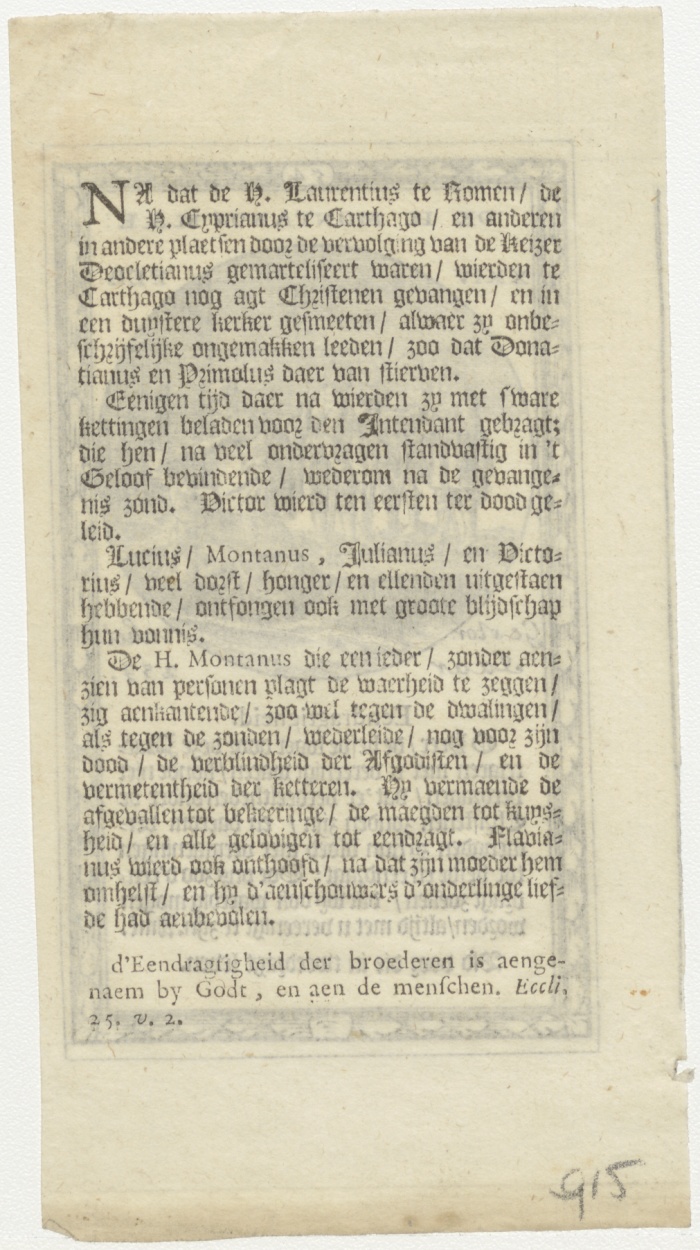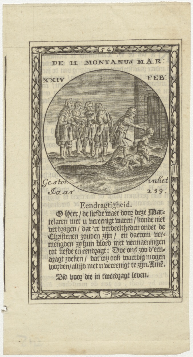 H. Montanus, naamfeest (24 februari), kz. levensbeschrijving