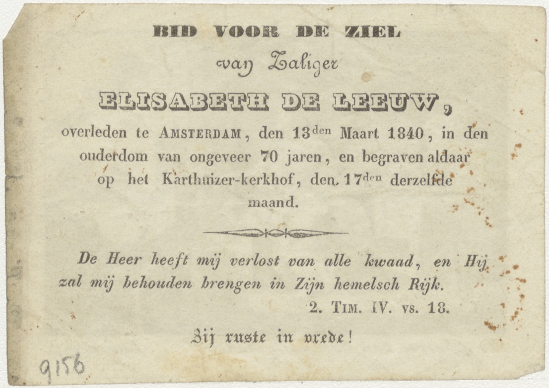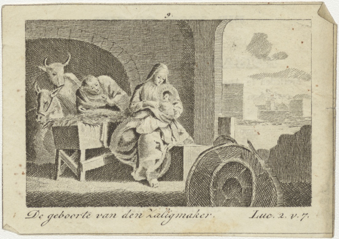 Geboorte van den zaligmaker (Luc. 2:7), kz. Bid voor ziel De Leeuw (+1840) Amsterdam