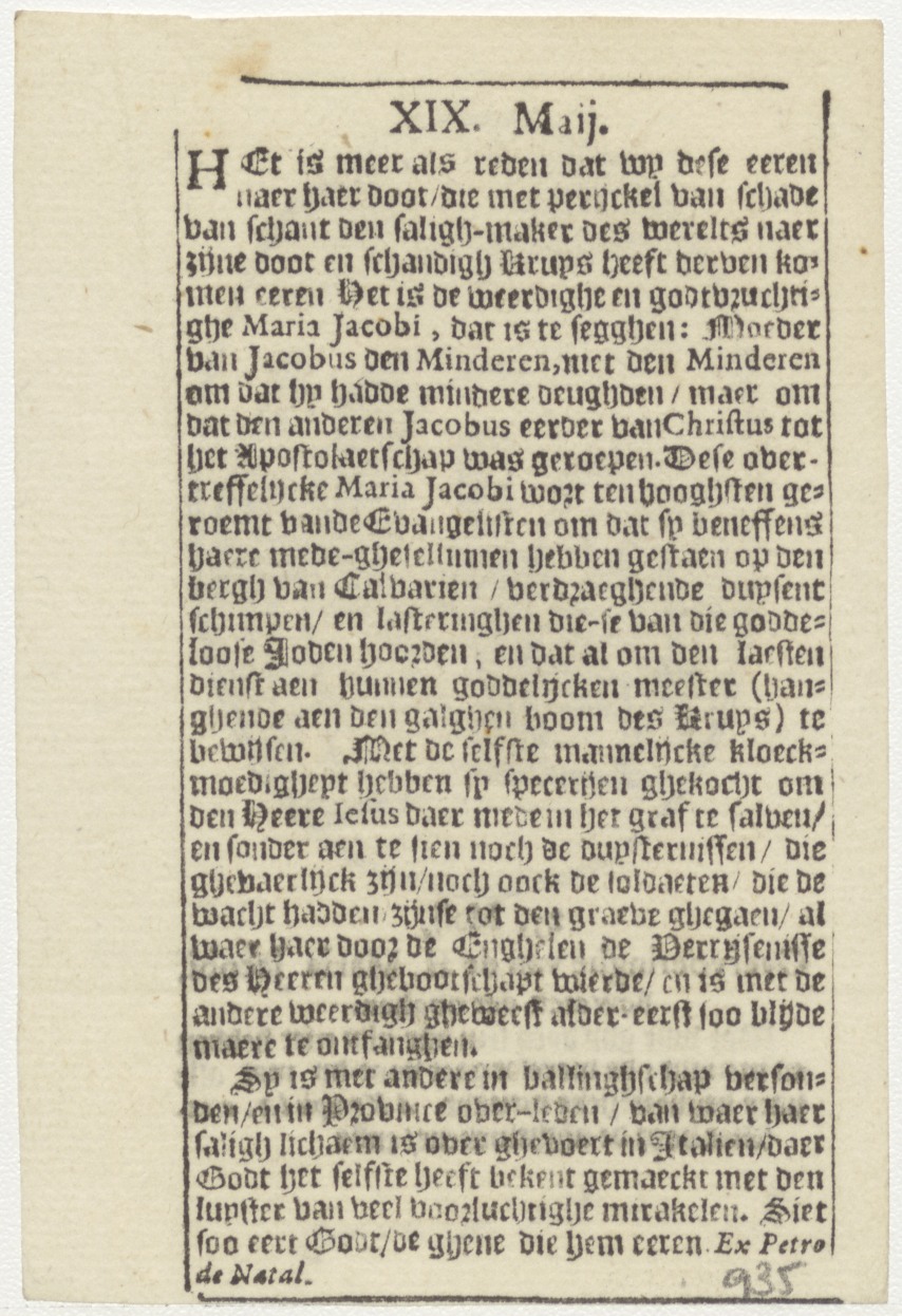 Overvoering van H. Maria Jacobi, naamfeest (25 mei), kz. levensbeschrijving