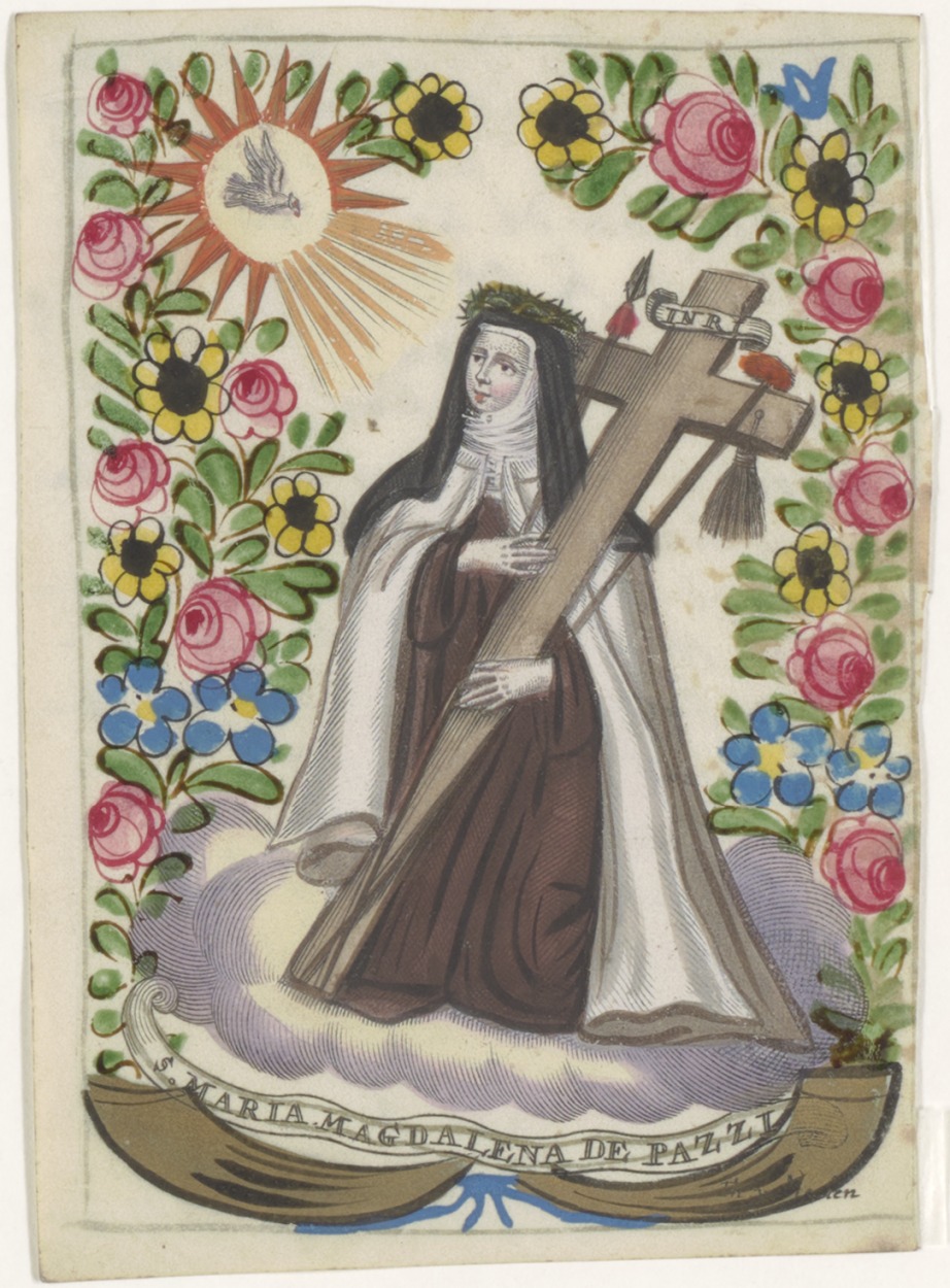 H. Maria Magdalena de Pazzi, ingekleurd, kz. Religieus(?);Bid voor ziel Maria Koogh (+1745), geestelijk dochter; van pastoor J. Bervelingh