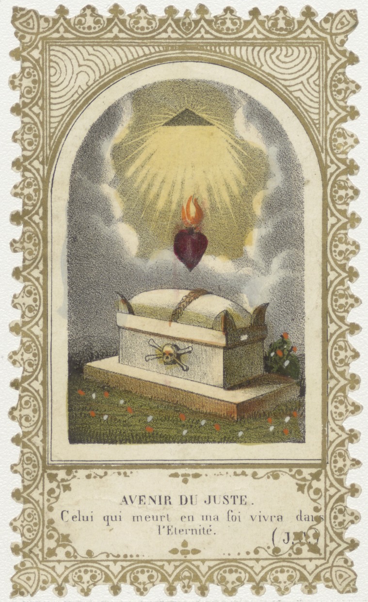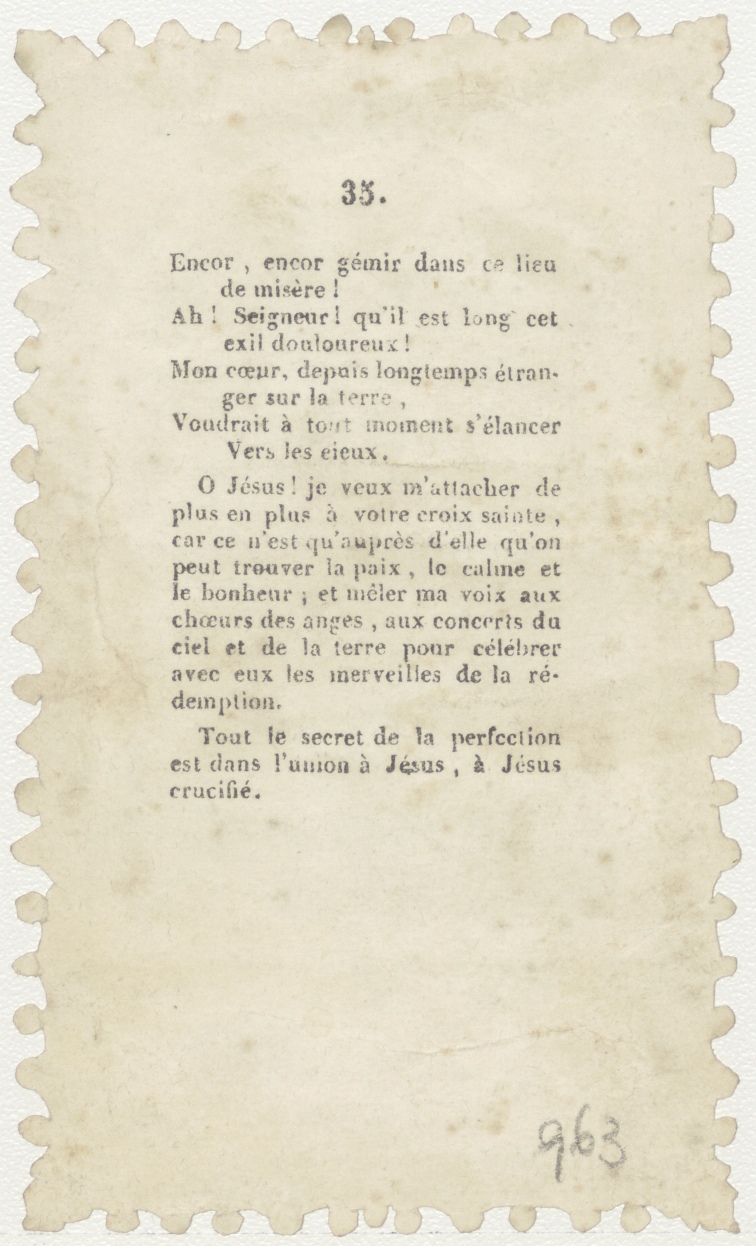 Wie sterft zal leven in eeuwigheid (Frans), afgeknipt, kz. gebed (Frans);