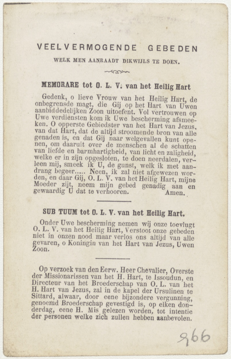 Maria met Christuskind, H. Hart van Christus (Frans), kz. Veelvermogende gebeden;memorate tot O.L.V. van het Heilig Hart;