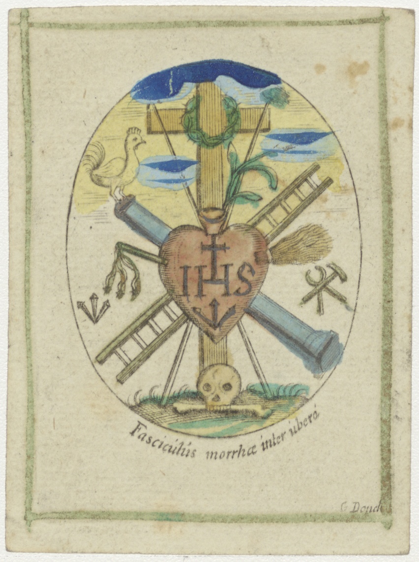 I.H.S. Hart van Christus met passiewerktuigen, ingekleurd