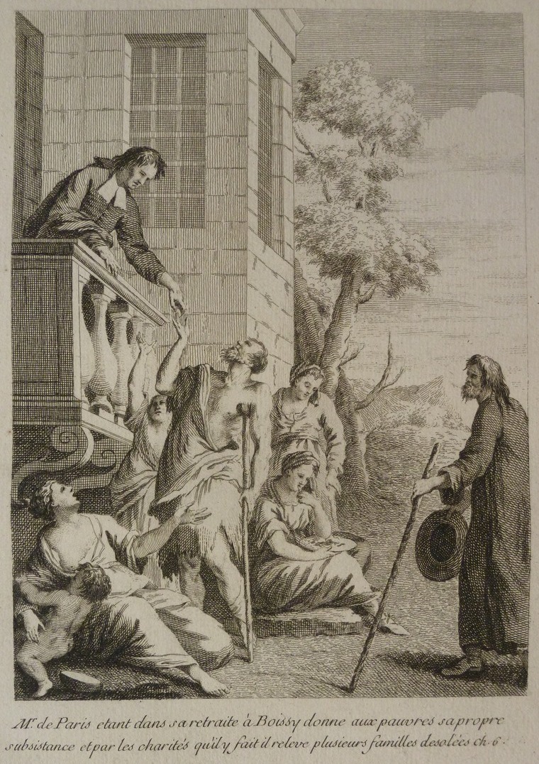 Afbeelding met François de Paris die de armen troost in zijn huis te Boissy