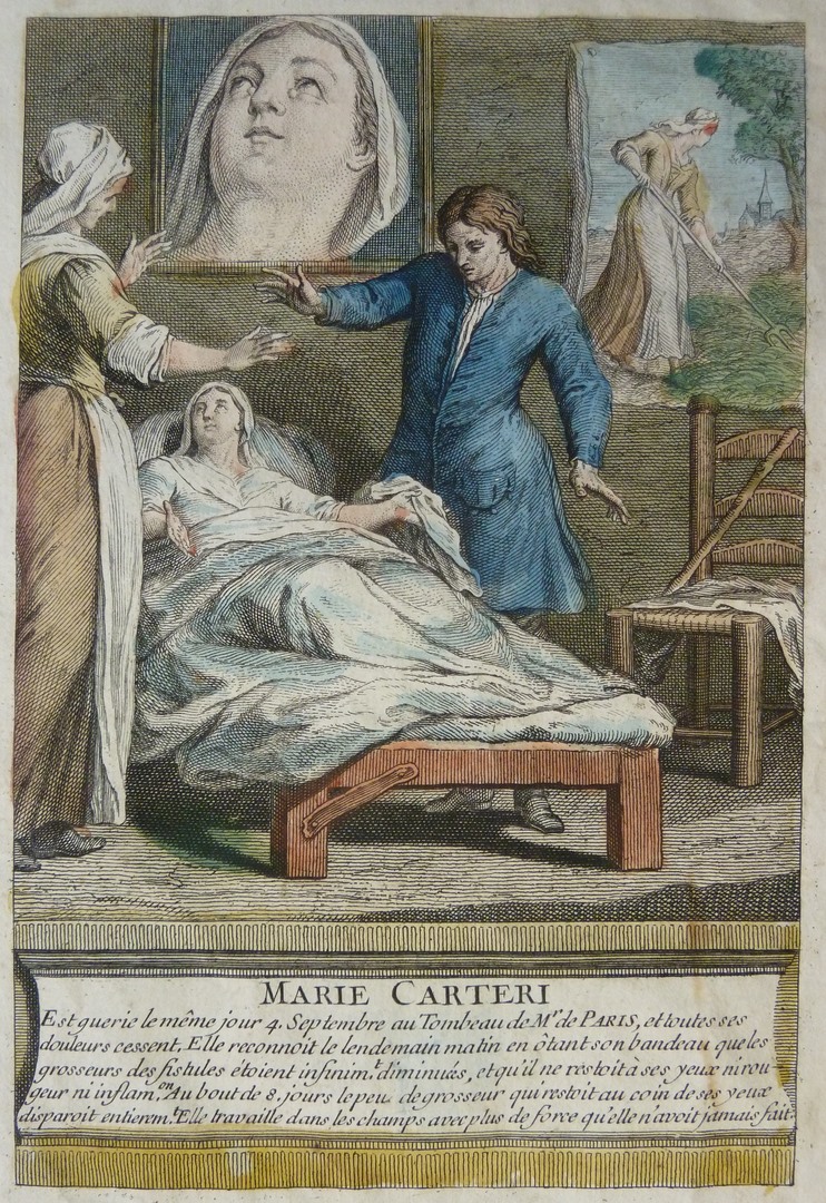 Marie Carteri's oogkwaal wordt genezen op het graf François de Paris, ingekleurd