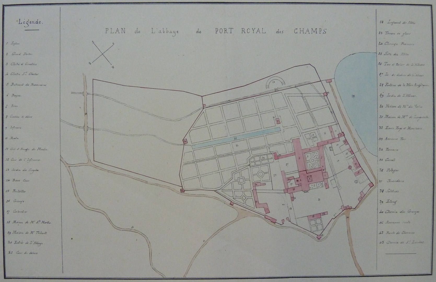 Plattegrond van het klooster van Port-Royal des Champs, aan weerszijde de legende