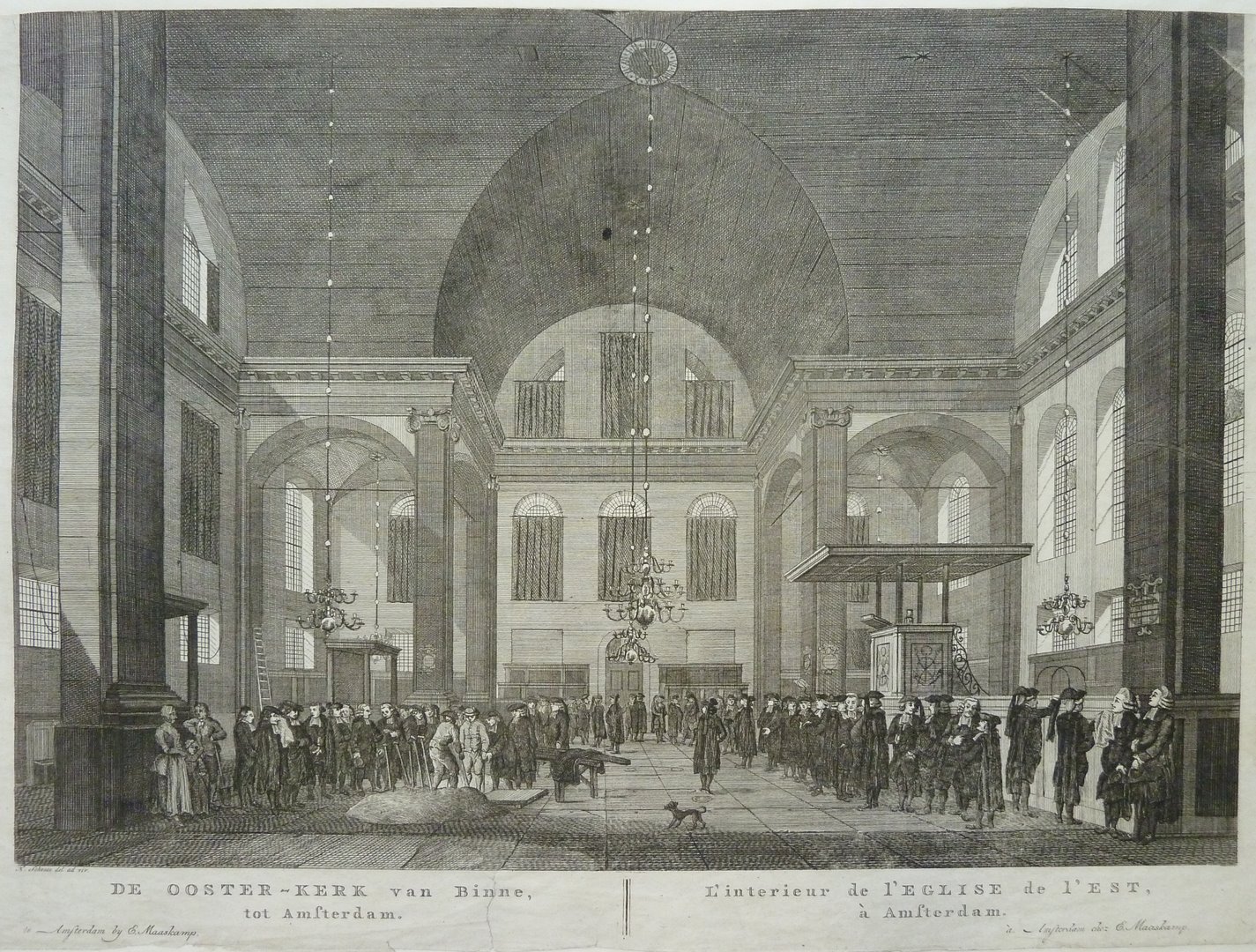 Amsterdam, interieur van de Oosterkerk, waar een begrafenis plaatsvindt