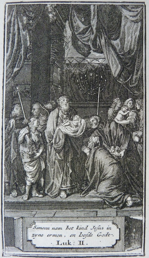 Simeon nam het kind Jezus in zijne armen, en loofde Godt (Luc.2)