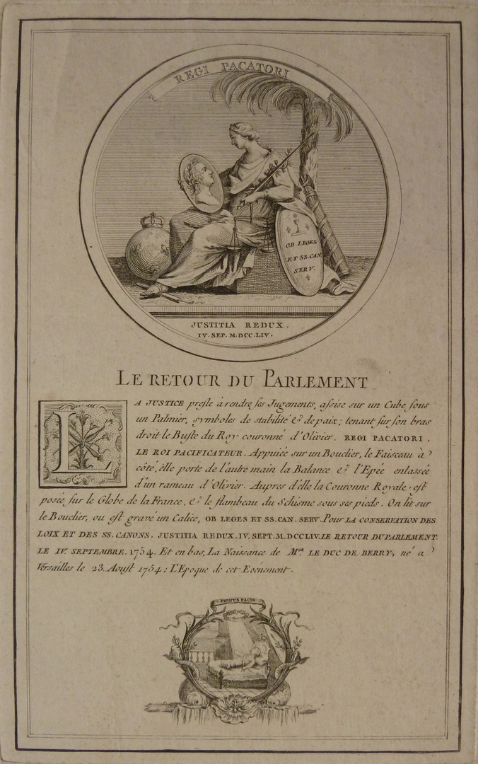 "Retour du Parlement" Vrouwe Justitia symbolen vrede en stabiliteit
