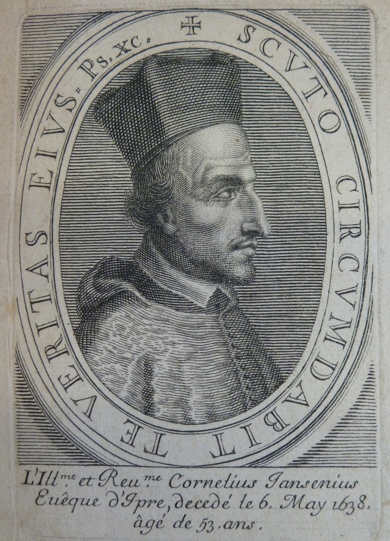 Portret van Cornelius Jansenius (1585-1638) met zijn grafschrift