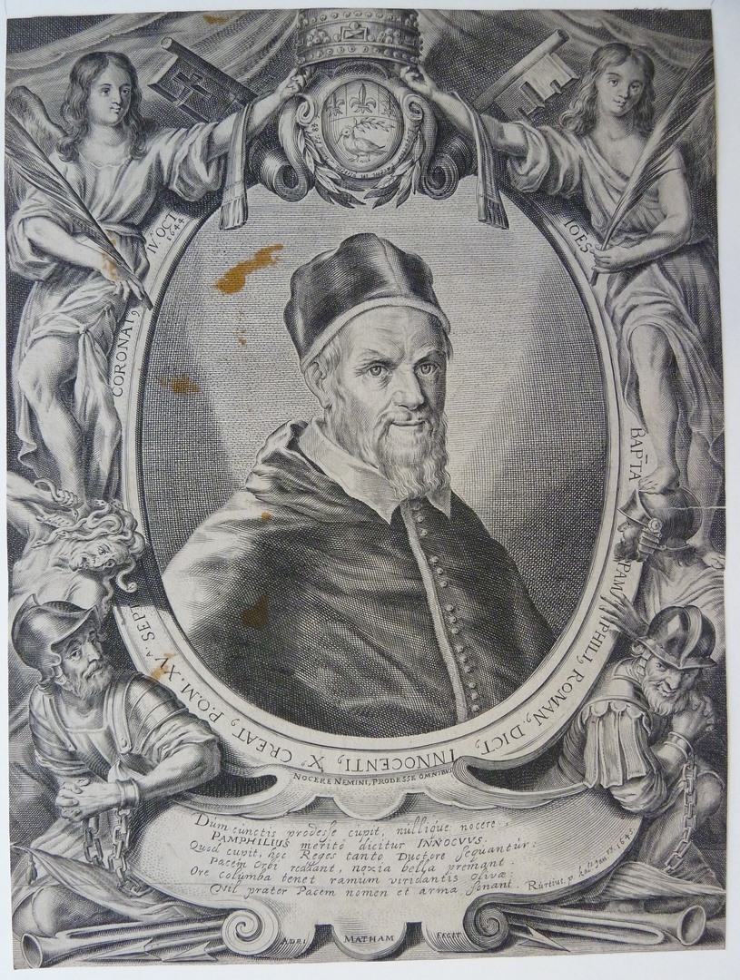 Portret van paus Innocentius X, met Latijnse tekst