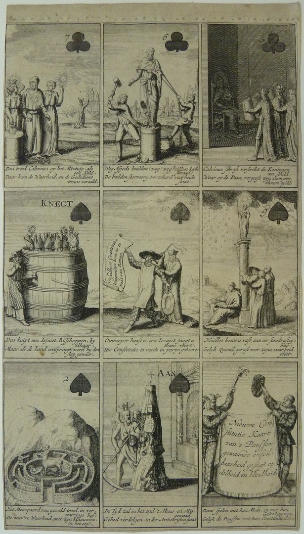 'Roomse onfeylbaarheyd word hier naar eys vertoond' serie (6) spotprenten als speelkaarten