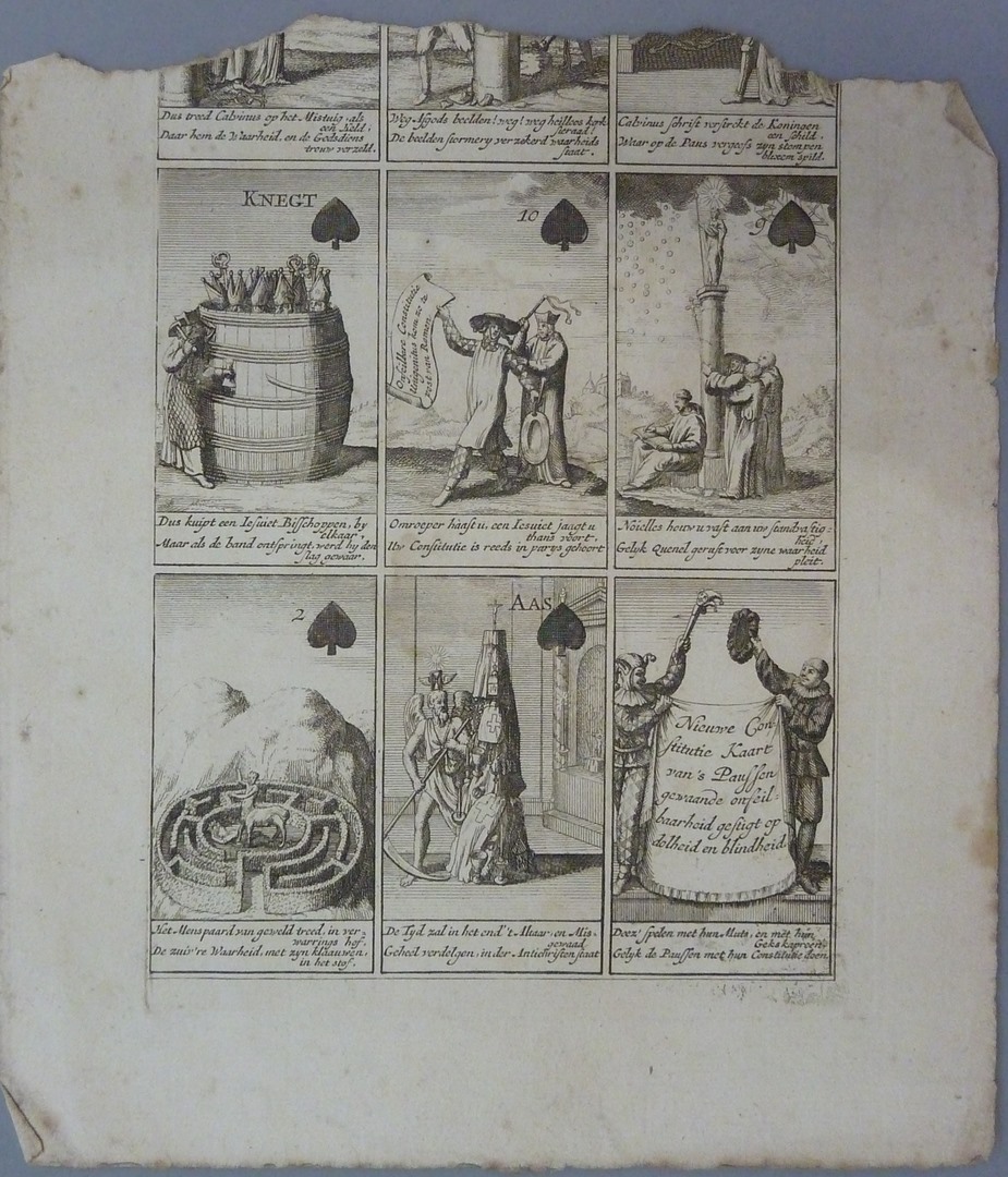 'Roomse onfeylbaarheyd word hier naar eys vertoond' serie (6) spotprenten als speelkaarten