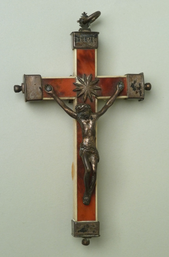 Kruisje met ster boven Christus, achterkant met drie nagels en ster op kruispunt der balken
