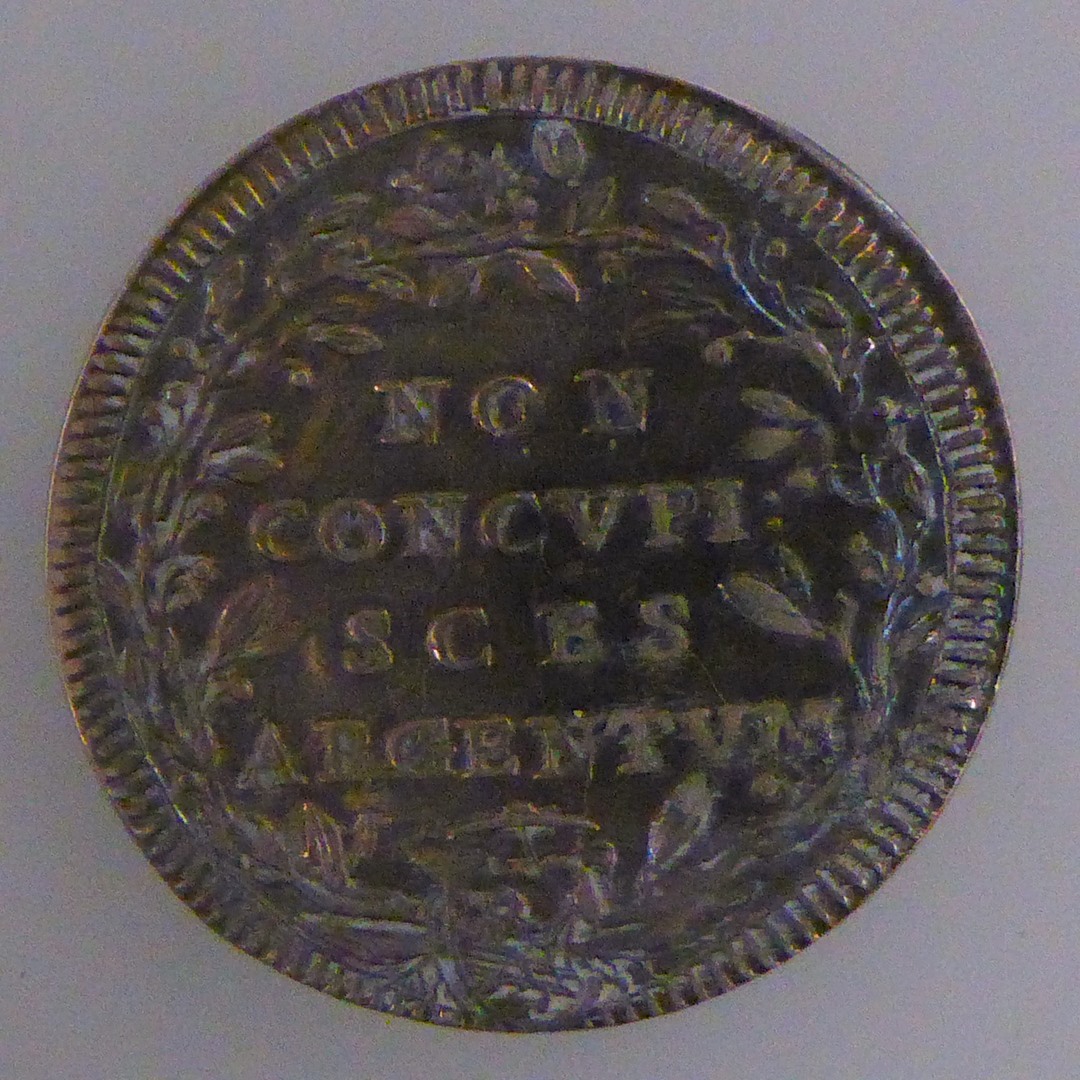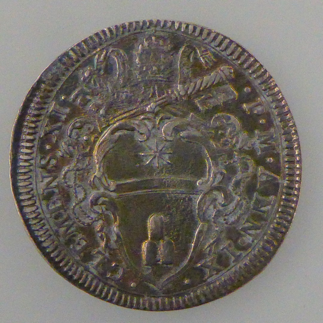 Pauspenning paus Clemens XI, met pauselijk wapen, randschrift, kz. opschrift