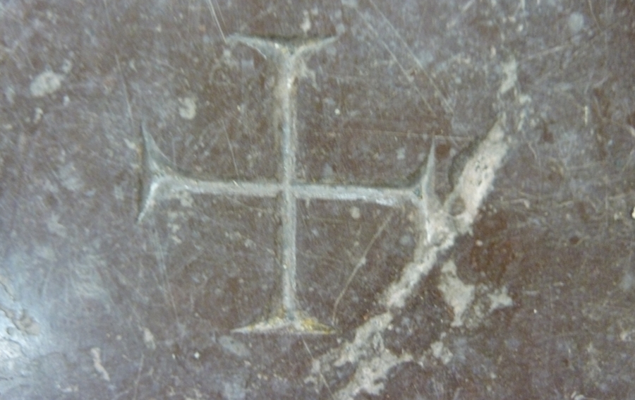 Altaarblad van rood marmer met vijf kruisjes