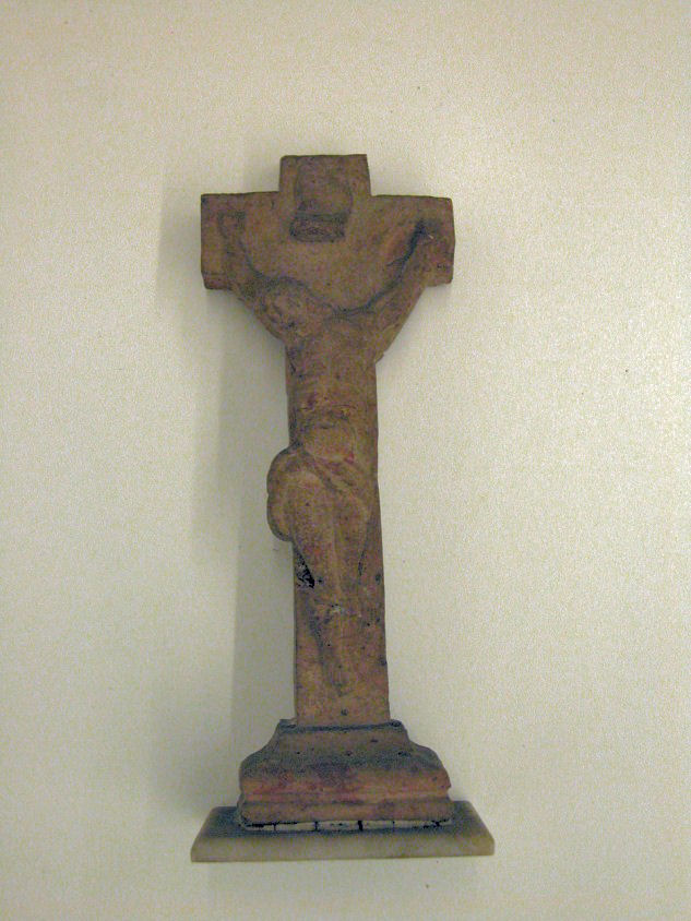 Crucifix, vervaardigd van een steen van de kerk van Port-Royal(?), met verfsporen