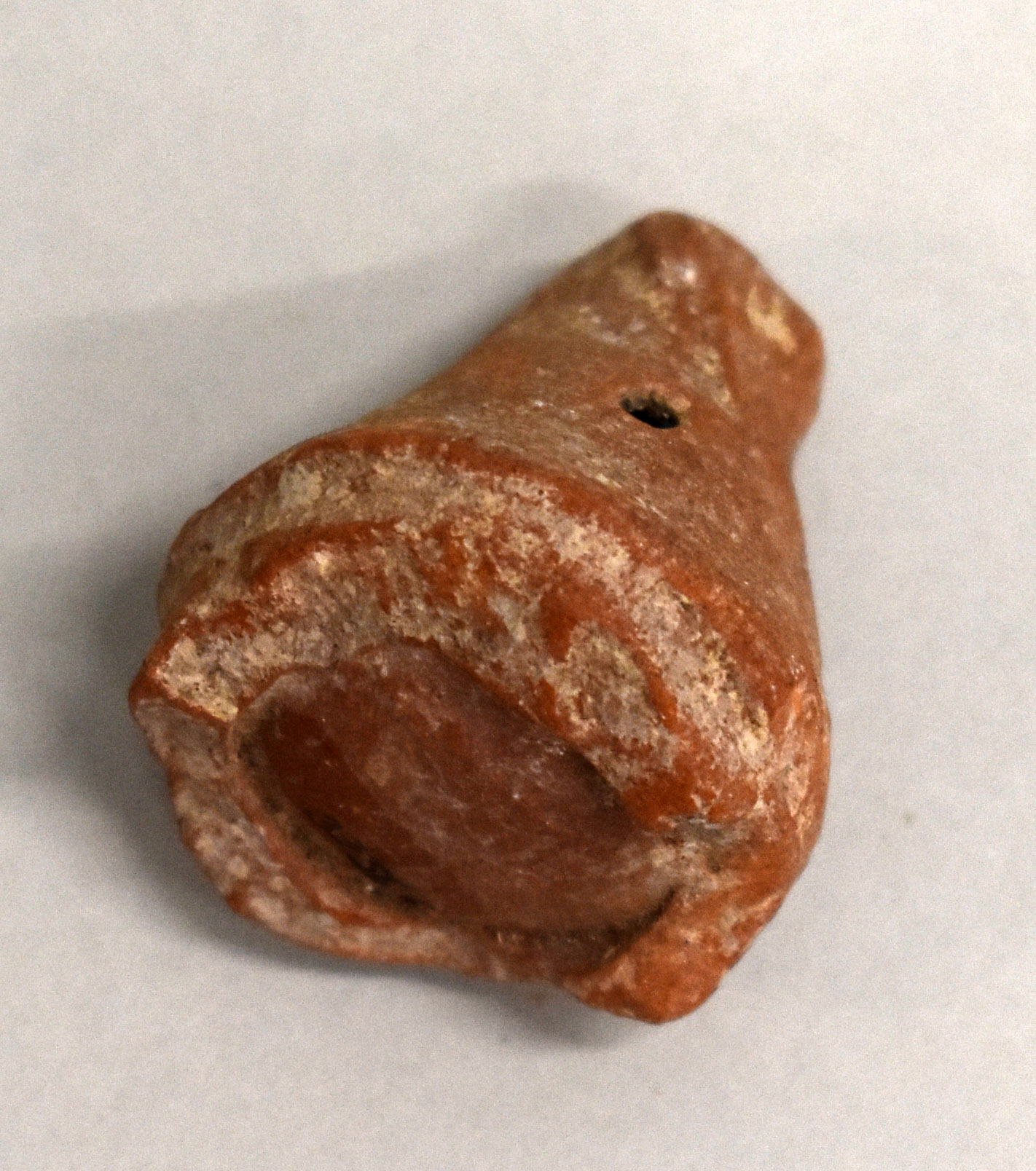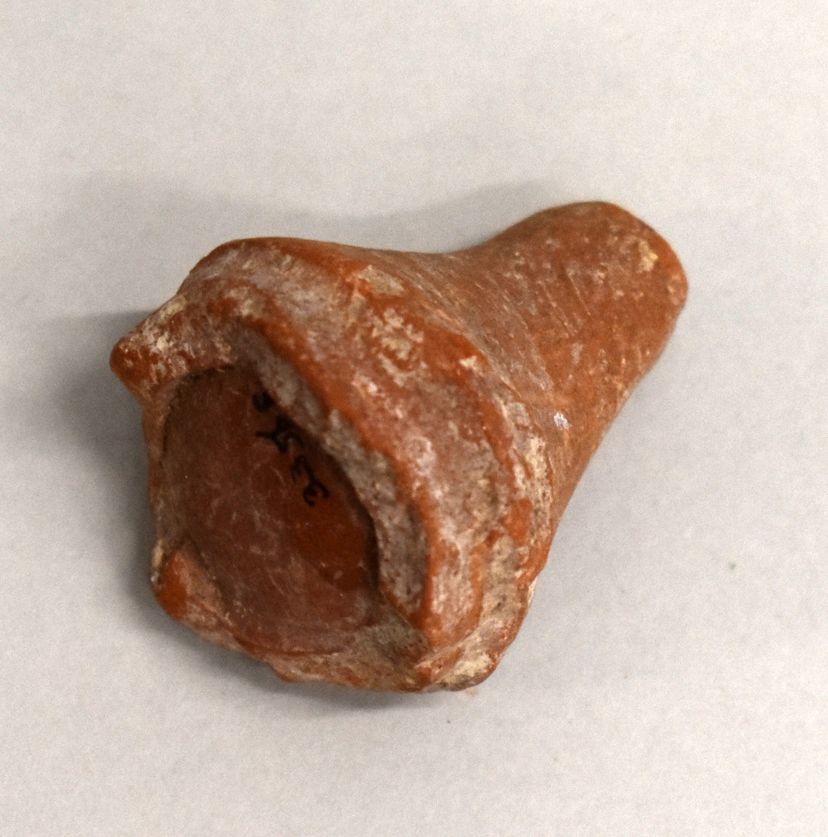 Scherf van aardewerk: gesloten hol fragment, spits toelopend