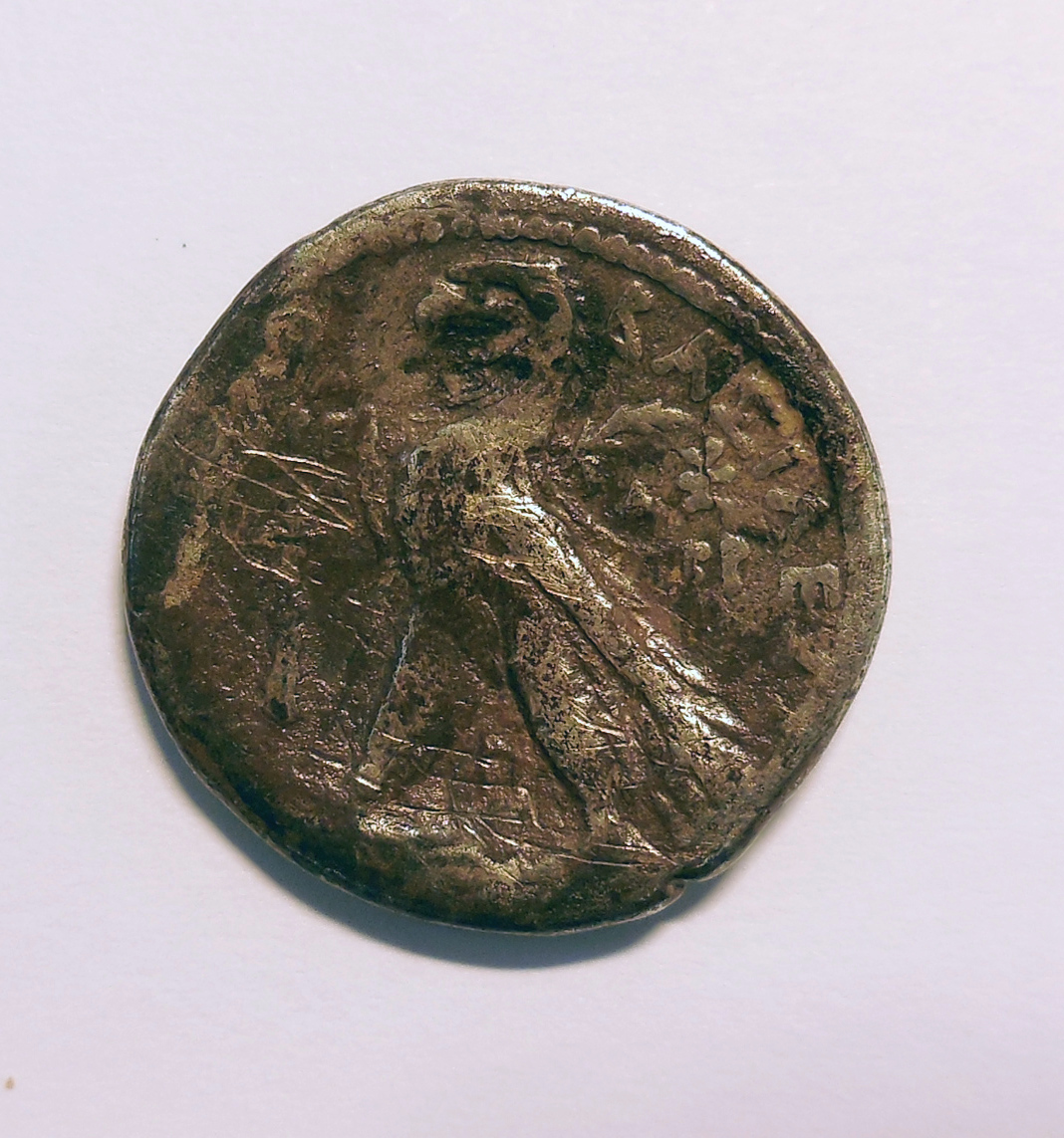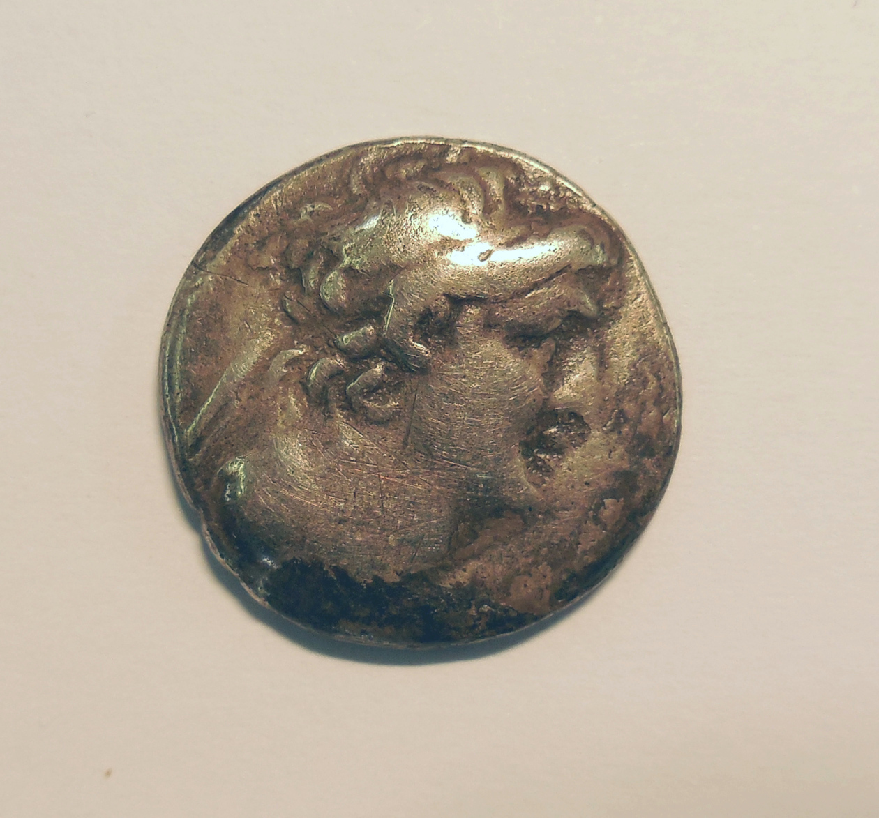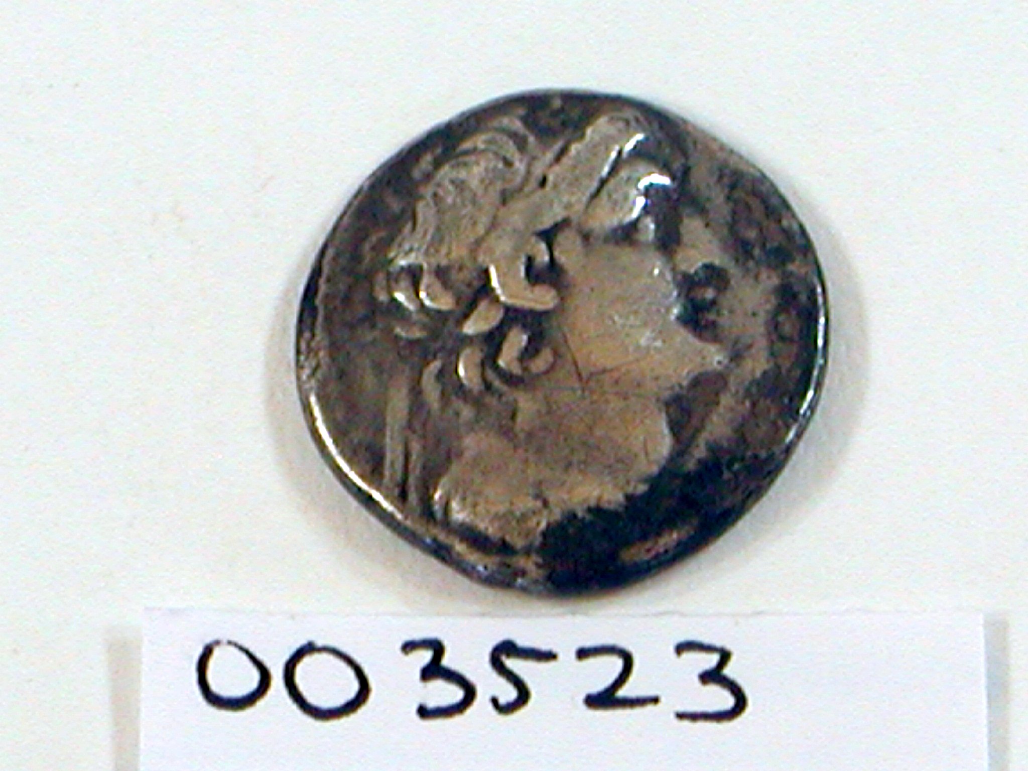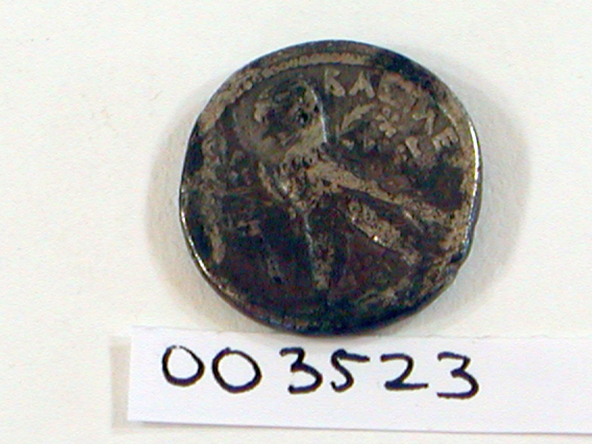 Munt met kop van een Antiochus, kz. adelaar, met Griekse tekst "BASILE"(OS) ...