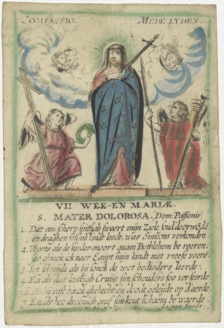 H. Maria Mater Dolorosa, met gebed, ingekleurd