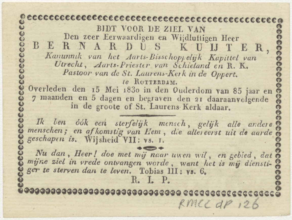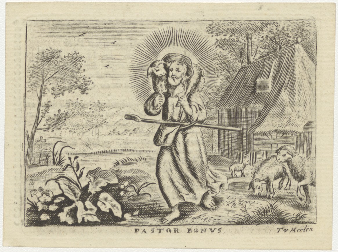 Pastor Bonus, Christus met schaap, kz. Religieus; bid voor ziel Bernardus Kuijter (+1830) kanunnik Utrecht, pastoor St. Laurens Rotterdam
