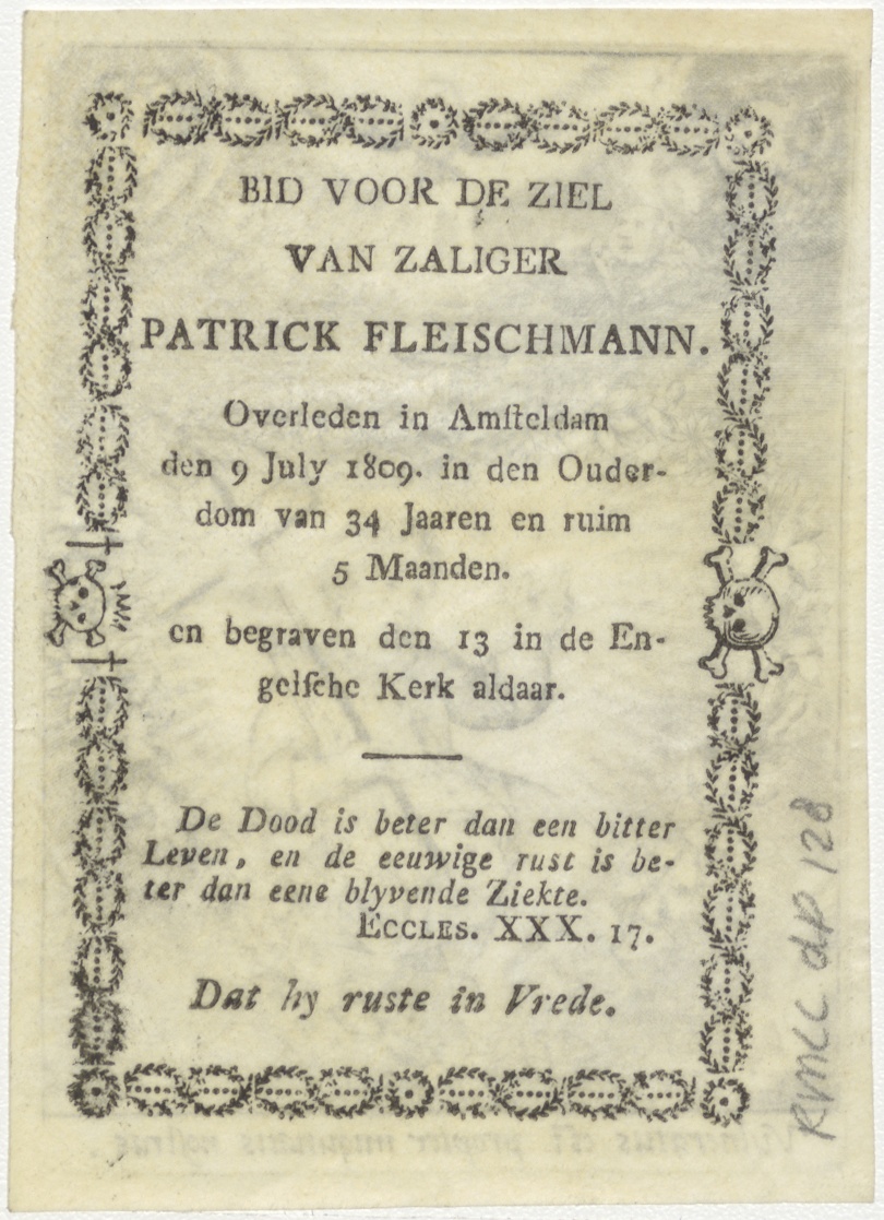 Jonge Christus met kruis in hart van bloemen, kz. Bid voor ziel Patrick Fleischmann (+1809);Amsterdam