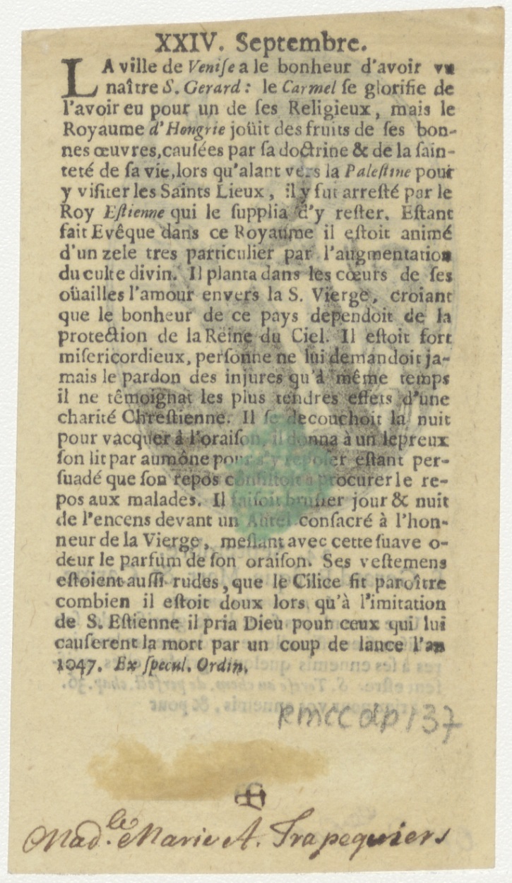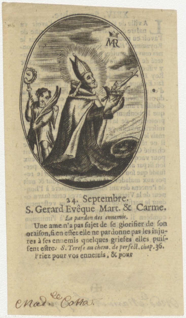 St. Gerard bisschop 24 sept. (Frans), kz. levensbeschrijving St. Gerard