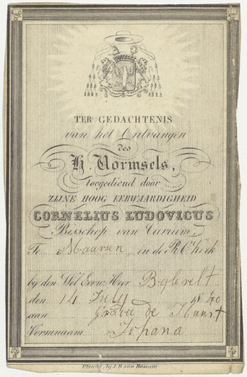 Vormselprent met "... toegediend door ... Cornelius Ludovicus ... 1840 ..."