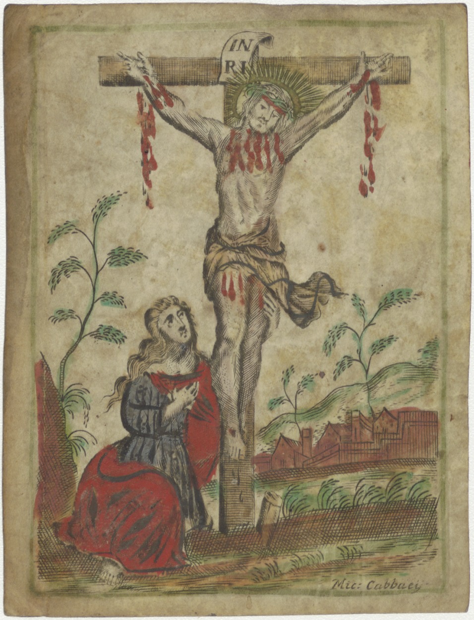 Gekruisigde Christus met Maria Magdalena, ingekleurd