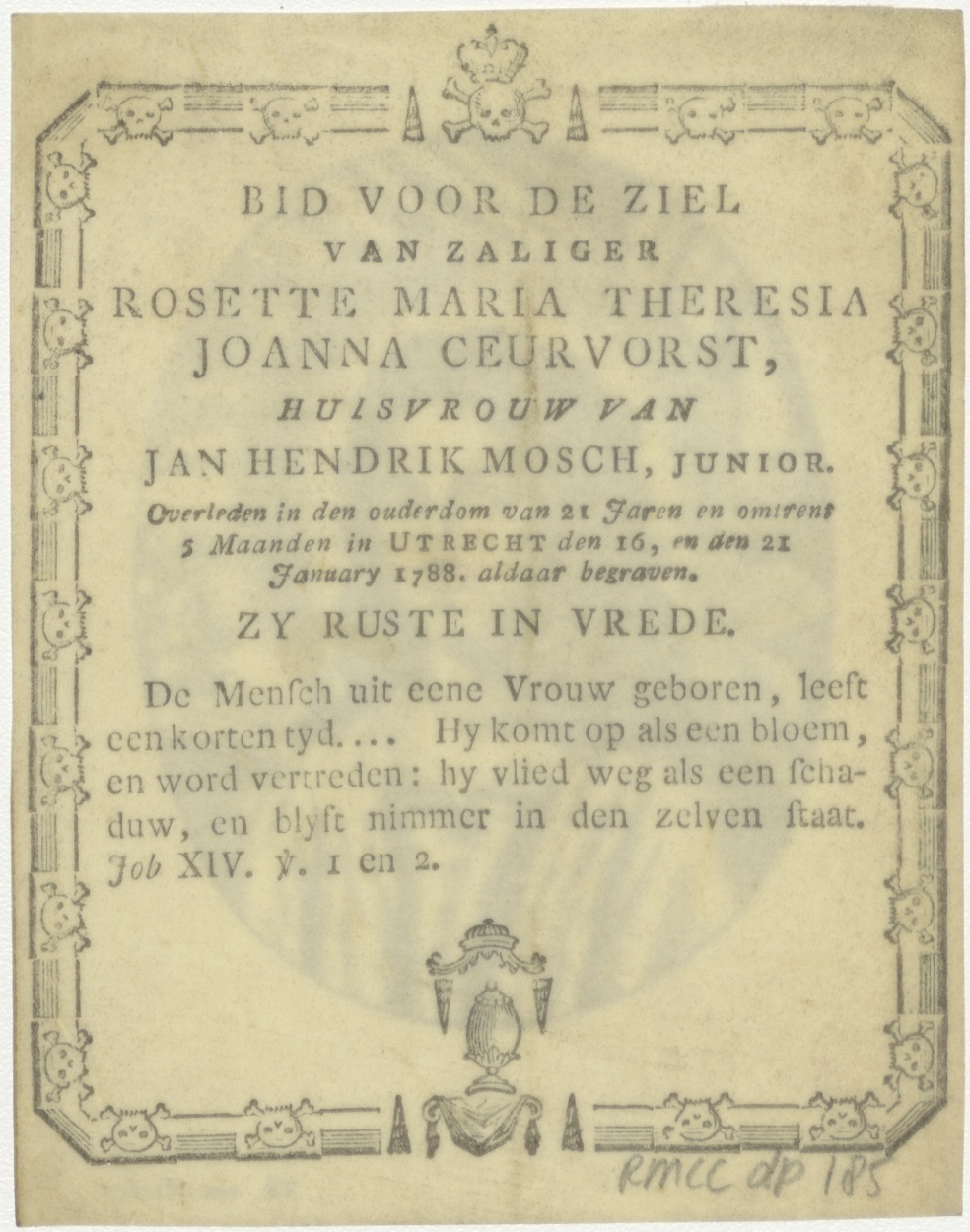 Christus als jongeling, kz. Bid voor ziel Rosette Maria Theresia Joanna Ceurvorst (+1788);Utrecht