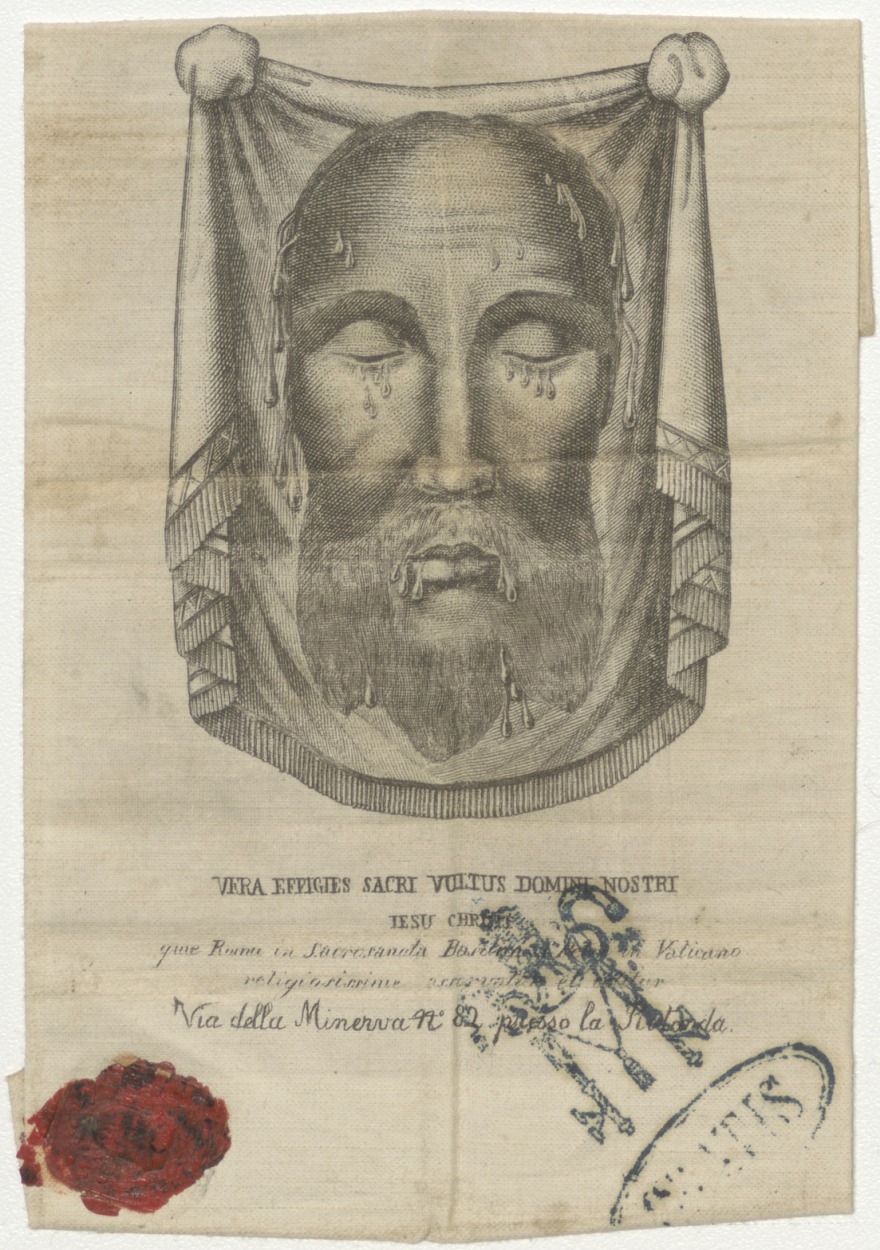 Vera icon (Veronicadoek) met "Vera Effigies Sacri Vultus Domini Nostri Jesu Christi"