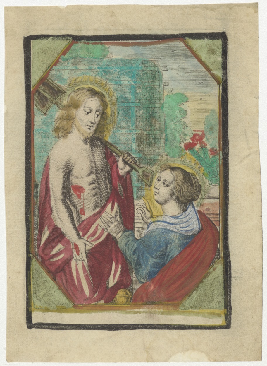 Christus met schep op schouder en Maria Magdalena, Noli me tangere, ingekleurd
