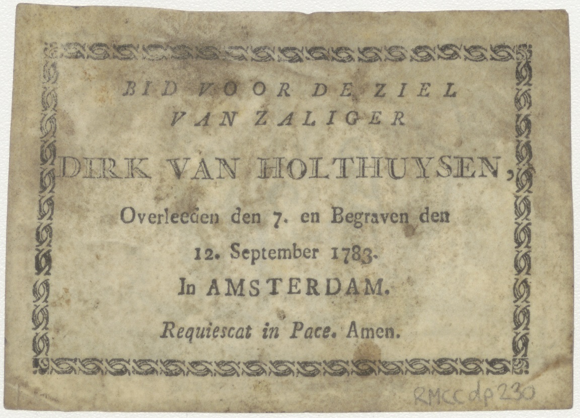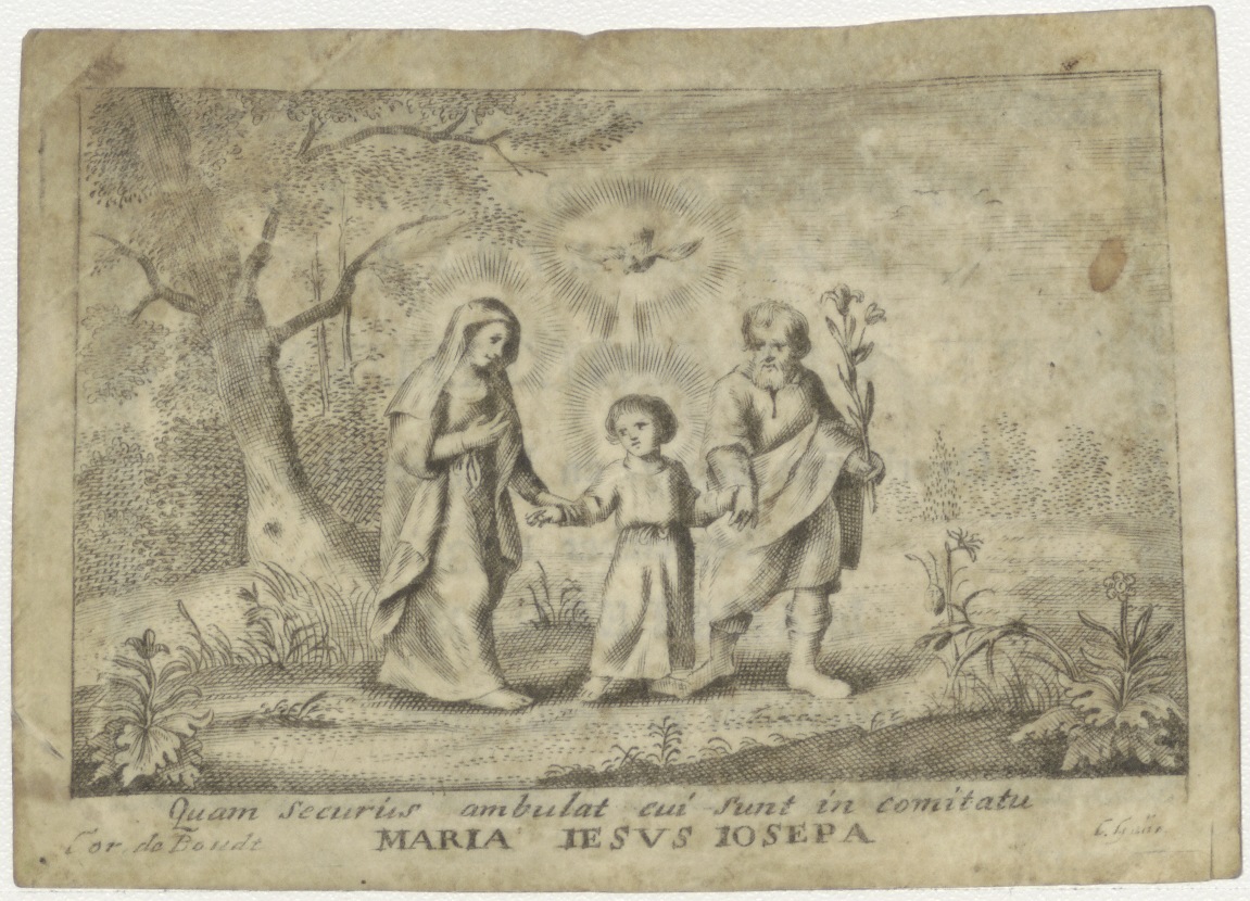 H. Familie, Maria Jezus en Jozef, met H. Geest in landschap, kz. bid voor ziel Dirk van Holthuysen (+1783) Amsterdam