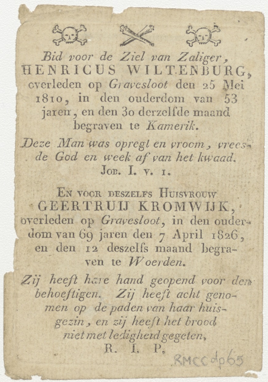 H. Wenceslaus, koning van Polen, kz. bid voor ziel Henricus Wiltenburg (+1810) en Geertuij Kromwijk (+1826)