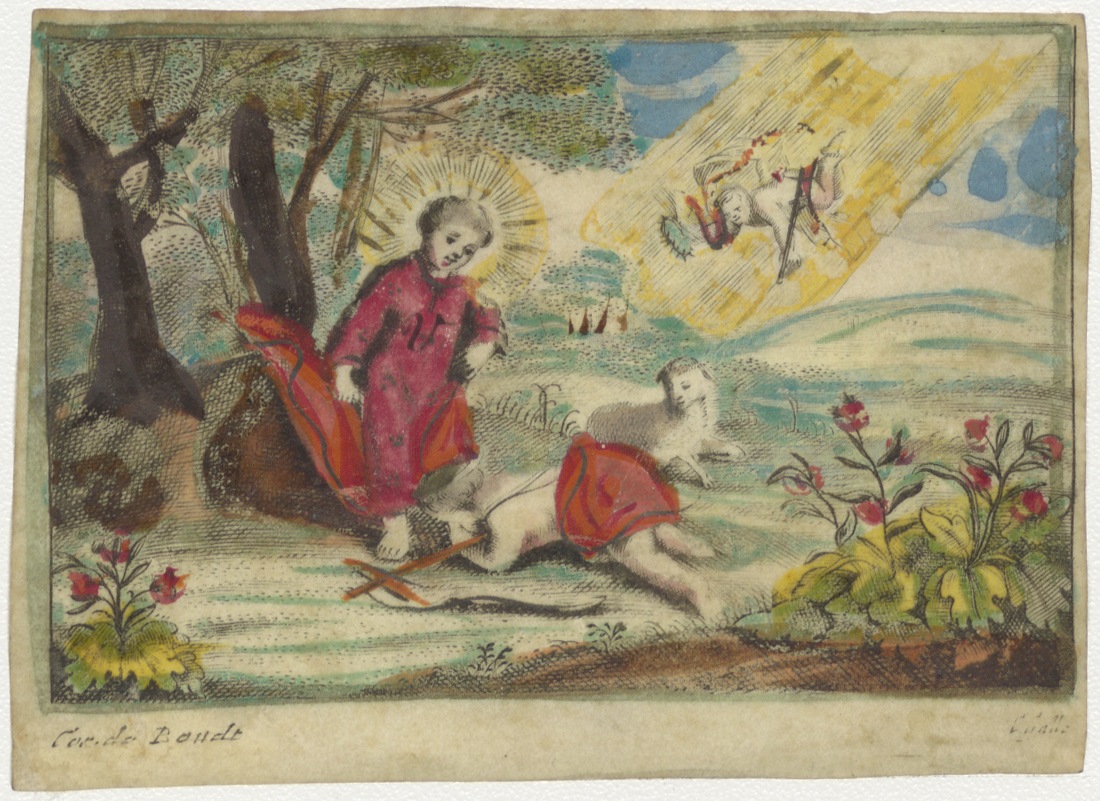 Johannes de Doper kust voet Jezus, als kinderen, ingekleurd